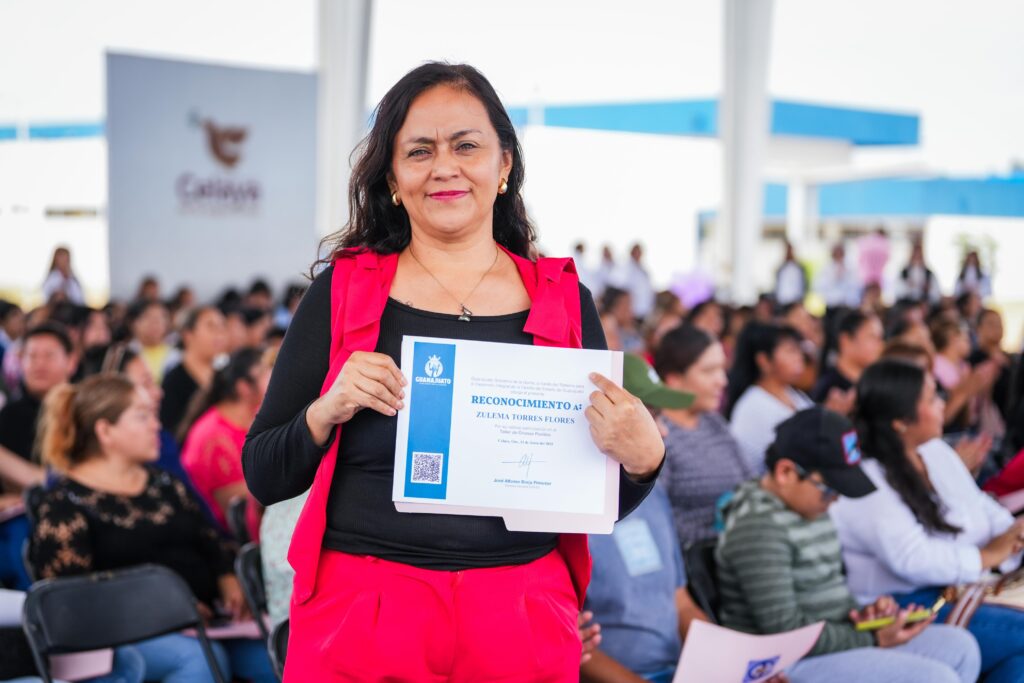 Celaya, Gto.- En el plantel CECyTE 1 de la comunidad de Trojes, el presidente municipal, Juan Miguel Ramírez, encabezó la ceremonia de graduación de 150 padres, madres de familia y tutores que participaron en programa “Crianza Positiva”, que tiene como objetivo fortalecer las competencias parentales y promover las relaciones familiares saludables centradas en el respeto, la empatía y la comunicación efectiva.
