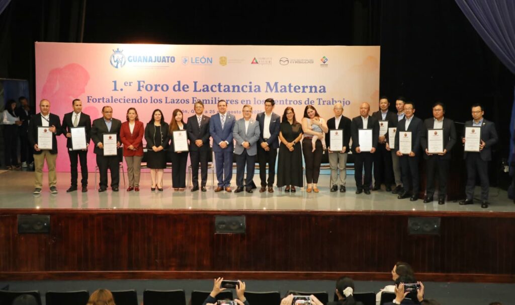 En el Foro se llevó a cabo la conferencia magistral “Lactancia en el trabajo: hacia entornos laborales saludables, sostenibles y humanos” y se realizó el panel “Lactancia Materna en los Centros de Trabajo: Mitos, realidades y beneficios”. Cabe resaltar que acudieron Takeshi Ishibashi, Presidente de Mazda y Presidente de Guanajuato Hiroshima Amigo -kai; Alfredo Granados Torres, Coordinador Estatal de Nutrición Hospitalaria y Encargado de Lactancia en el Estado, al igual que Nagomi Hamauzu, Especialista en Sociedad Japonesa de Mazda, y Alina Alondra Hernández González, en representación del municipio de León, entre otras personalidades.