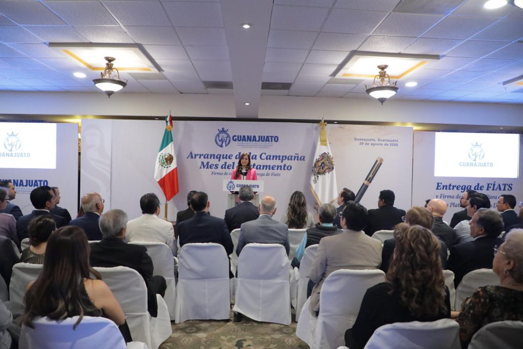 Guanajuato, Gto.- La Gobernadora de la Gente, Libia Dennise García Muñoz Ledo, encabezó la ceremonia del arranque de la campaña Septiembre Mes del Testamento, así como la Entrega de Fíats y la Firma del convenio “Sello Digital”.