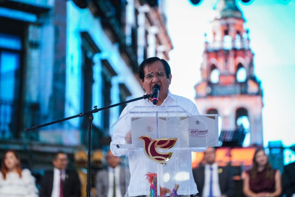 Luego de la sesión solemne de Ayuntamiento donde hizo la entrega formal y legal del documento que contiene el Primer Informe de Gobierno, el alcalde se trasladó a la Calzada Independencia que fue el escenario donde miles de personas escucharon algunos de los avances más importantes que se han obtenido durante este primer año de trabajo en materia de seguridad, desarrollo económico, servicios públicos y bienestar integral.