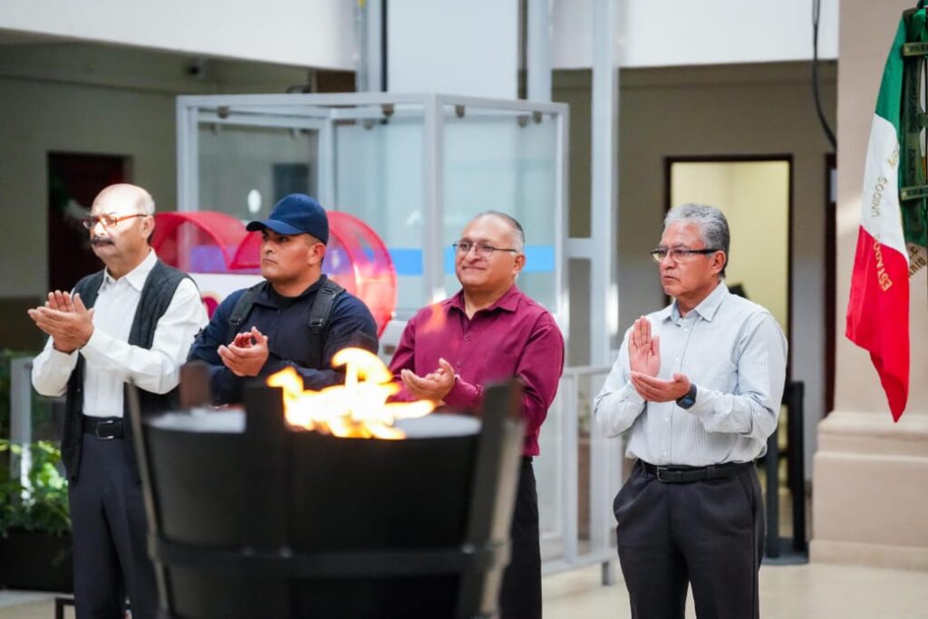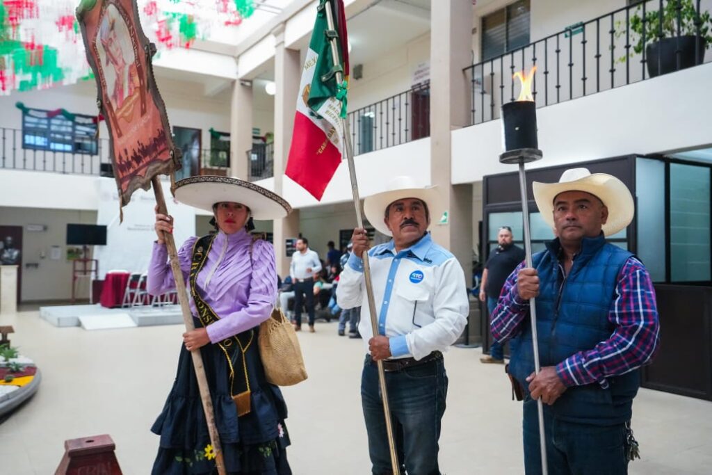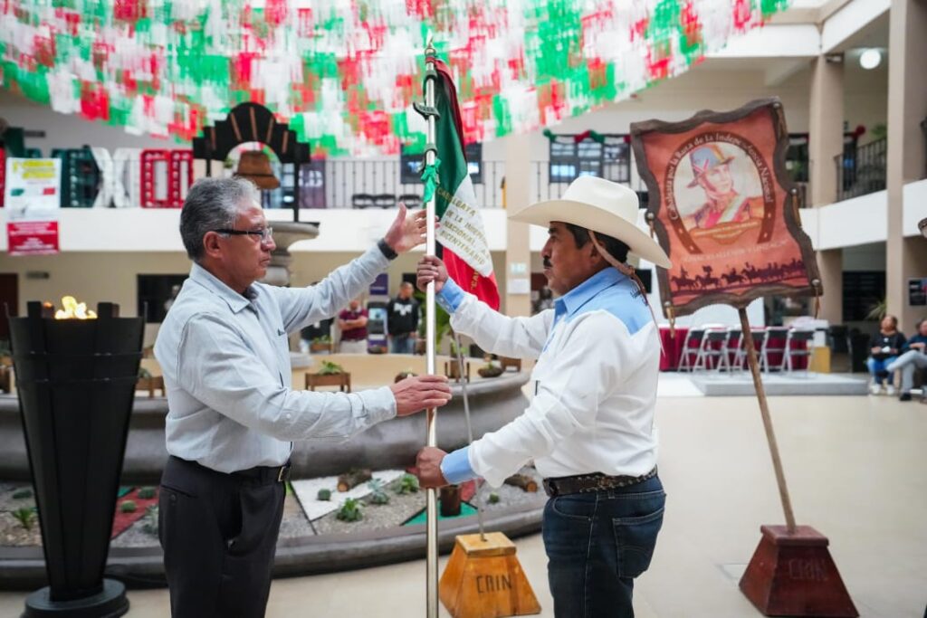 Con la representación del presidente municipal, Juan Miguel Ramírez, el jefe de gabinete Gustavo Paloalto encabezó la entrega de los símbolos patrios, acompañado por el secretario particular Jesús Paz, el director de Policía Municipal, Rafael Cajero, y el director de Desarrollo Social, Valentín Sánchez.