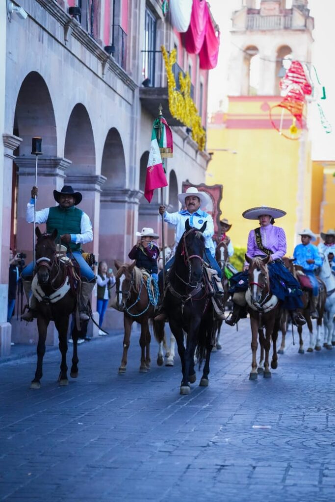 Por parte de la Cabalgata por la Ruta de la Independencia su presidente, Oscar Arroyo, acompañado de la reina de la Cabalgata y algunos de sus miembros, fueron los encargados de recibir el Lábaro Patrio, el Fuego Libertario y el estandarte de la Virgen de Guadalupe, como el utilizado durante el inicio de la Guerra de Independencia por el cura Miguel Hidalgo.