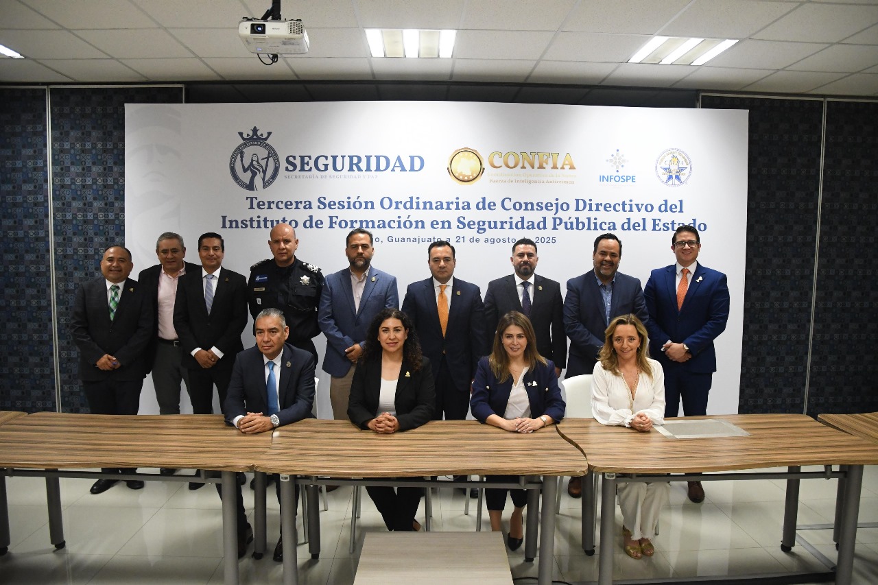Silao de la Victoria, Gto.- El Instituto de Formación en Seguridad Pública del Estado (INFOSPE), perteneciente a la Secretaría de Seguridad y Paz, informó la creación de la Maestría en Seguridad Nacional, así como el Doctorado en Gobernanza y Seguridad Pública, programas que consolidan su liderazgo académico en la profesionalización de las corporaciones de seguridad. Lo anterior durante la celebración de la Tercera Sesión Ordinaria de su Consejo Directivo.